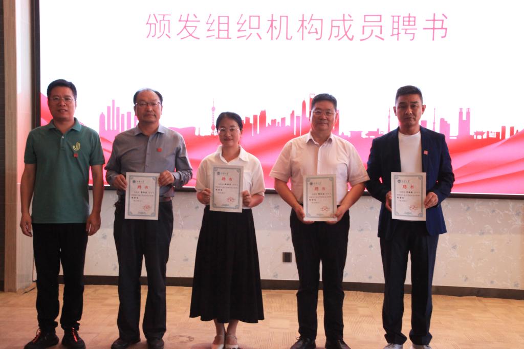 杜艳校友代表筹备组向大家介绍了青海校友会成立筹备的情况。周云龙宣读青海校友分会组织机构组成(建议)人员名单,名单经全体到会校友审议并一致通过。符惠明向新当选副会长韩家林授会牌,并代表江南大学向其赠送双面绣、校园文化书籍纪念品。周云龙向新当选秘书长杜艳授会旗。周云龙、宋志华为组织机构成员颁发聘书。