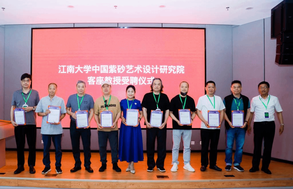 设计学院教授邓嵘和吴祐昕诵读了由设计学院副教授代福平撰写的《弘陶馆记》。活动期间,同步举行了江南大学中国紫砂艺术设计研究院学术委员会与理事会成立仪式暨客座教授和兼职硕士生导师授聘、大师工作室授牌仪式。
