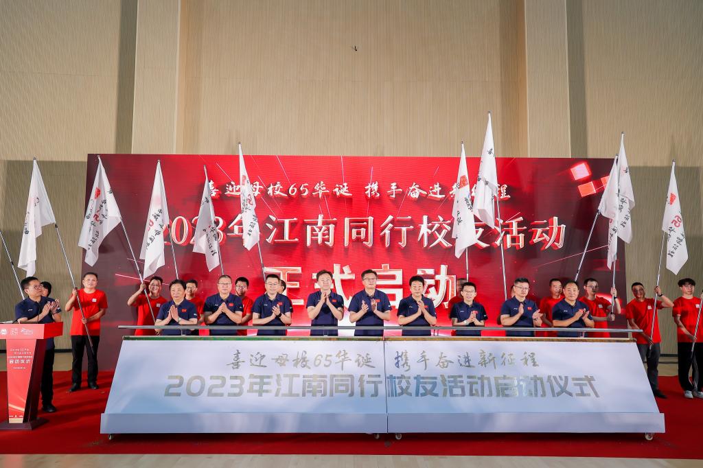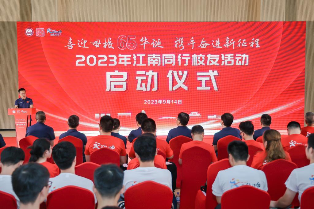 9月14日,是江南大学建校65周年校庆日倒计时65天。为营造和丰富校庆氛围,进一步凝聚校友力量,“喜迎母校65华诞 携手奋进新征程”——江南大学2023年“江南同行”校友活动启动仪式在北区新训练馆举行。校党委副书记符惠明,校党委常委、副校长倪松涛,党委办公室主任王维、校长办公室主任黄敏、校团委书记魏珍吉、体育部主任秦永和、社会合作与校友联络处部门负责人,上海校友会、浙江校友会、南京校友会、苏州校友会、镇江校友会、常州校友会、无锡校友会、宜兴校友会、无锡MBA校友会、无锡设计校友会分会、2022届校友会等代表,各学院校友会代表以及在校学生共120余人参加了本次活动。活动由社会合作与校友联络处处长周云龙主持。