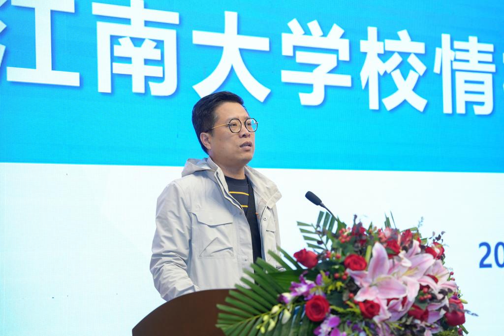 刘长青代表江南大学商学院向校友介绍商学院建设发展情况。刘长青从历史沿革、专业及学位点建设、师资队伍、人才培养、科研创新和国际交流等六个方面向校友们做了详细的介绍。经过38年的发展,学院累计为社会培养了2万余名商科人才。众多校友是学院的宝贵资源,学院会一直关心关注校友发展,欢迎校友们常回来看看。