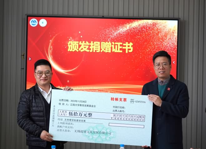 无锡超睿文化发展有限公司向理学院捐赠50万元,用于支持基础学科建设的发展。未来,理学院将和超睿联合相关单位,在青少年素质拓展等方面共同探索,打造新的育人品牌。