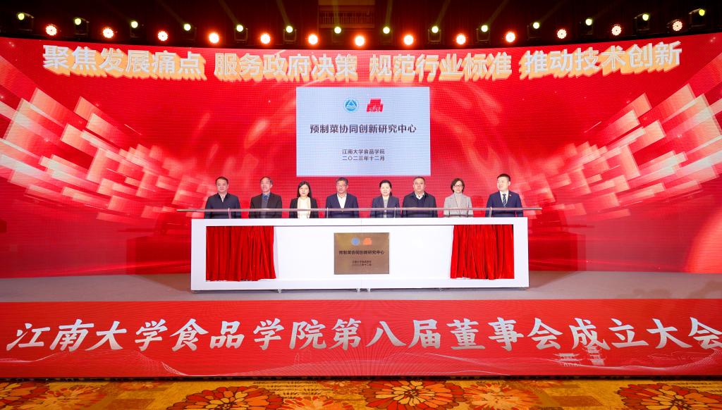陈卫、金征宇、张影陆、邵薇、齐小宁、李宇飞、姜辉与江南大学食品学院院长范大明共同为“预制菜协同创新研究中心”揭牌。