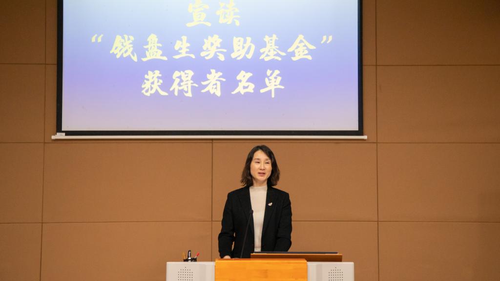 单筱婷宣读了2023年“钱盘生奖助基金”获奖学生名单。安楠等17位同学获钱盘生奖学金,郭超静等8位同学获钱盘生助学金。颁奖仪式上,钱盘生为获奖同学颁发了荣誉证书。