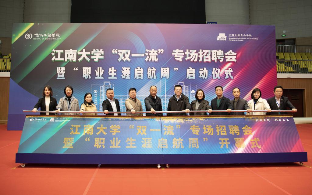 各学院积极为毕业生和企业单位搭建供需桥梁,全力为学生提供丰富优质的就业岗位。首届江南大学“双一流”专场招聘会由食品学院和生物工程学院联合举办,会场以“食强生特·职奔未来”为主题,吸引了伊利、安井、张裕葡萄酒、国信协联等150余家500强企业、上市公司、实力科研院所以及学院的董事、理事单位等知名企业参加。电子信息类专场校园招聘会由物联网工程学院和人工智能与计算机学院联合举办,汇聚中国电科、理想汽车、华润微电子、博世、卡特彼勒、中科曙光等龙头领军企业、科研院所、事业单位。纺织科学与工程学院举办的纺织行业专场招聘会不仅吸引了国泰华盛、无锡吉润、吴江福华织造等校友及校企合作单位,还吸引了中国纺织对外经济技术合作有限公司、航天海鹰(镇江)特种材料有限公司等行业龙头企业,江苏舜天、日华化学、苏州正雄等重点产业相关企业。江南大学医药卫生类首届毕业生专场招聘会由无锡医学院和生命科学与健康工程学院联合举办,汇聚江南大学各附属医院、无锡市人民医院和无锡市南京大学锡山应用生物技术研究所、药明康德、阿斯利康、华瑞制药、扬子江药业、长风药业等卫生机构、科研院所、医药龙头领军企业。