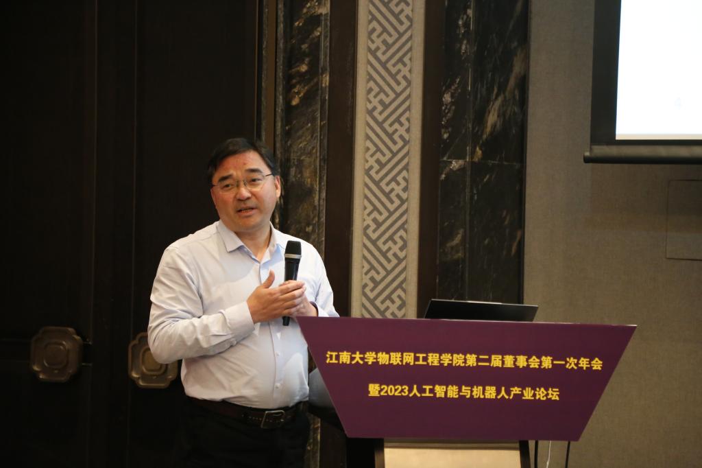 12月16日下午,物联网工程学院第二届董事会第一次年会暨2023人工智能与机器人产业论坛成功举办。物联网工程学院党委书记耿向阳,无锡市自动化协会理事长、原通信与控制工程学院党委书记杨慧中,江南大学科研院副院长樊启高,物联网工程学院党委副书记兼副院长孔丽丹以及来自董事单位、校友企业及协会单位的19家企业代表30余人参加了此次活动。论坛由孔丽丹主持。