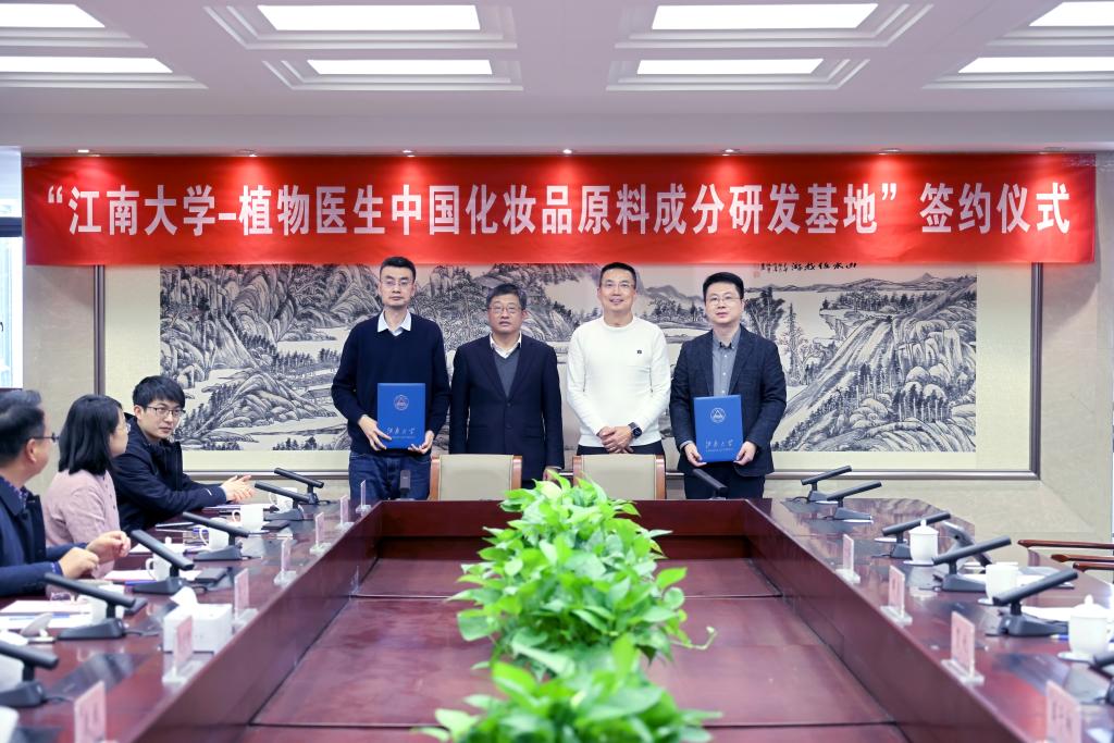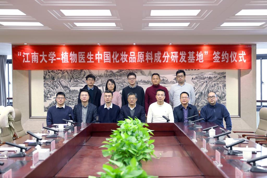 12月21日下午,“江南大学-植物医生中国化妆品原料成分研发基地”签约仪式在行政楼B305举行,中国工程院院士、江南大学校长陈卫,植物医生创始人兼董事长解勇,食品生物技术中心主任、益生菌与肠道健康国际联合研究中心主任赵建新教授,食品学院崔树茂教授,未来食品科学中心康振教授,工信部化妆品原料创新成果产业化基础公共服务平台主任、化学与材料工程学院副院长王靖,化工校友会会长杜养标,植物医生研发中心总经理、江南大学校友贺锐等嘉宾出席签约仪式。仪式由化学与材料工程学院党委书记潘庆伟主持。