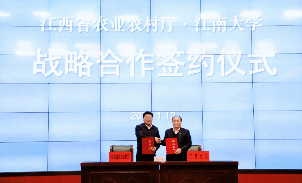 1月12日,我校与江西省农业农村厅在南昌举行战略合作签约仪式。江西省农业农村厅党组成员、副厅长李文信,校党委常委、副校长顾正彪出席签约仪式并讲话。江西省农业农村厅机关有关处室、南昌市农业农村局有关负责同志,江西省农科院加工所、南昌大学食品学院等科研院所有关负责同志,江西省部分龙头企业代表;我校产业技术研究院相关负责同志等参加了签约仪式。