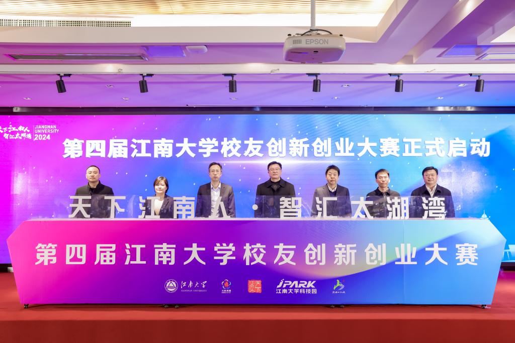 1月25日下午,“天下江南人·智汇太湖湾”第三届江南大学校友创新创业大赛颁奖典礼暨第八届J-PARK创业嘉年华于江南大学长广溪宾馆隆重启幕。江南大学校友会会长符惠明,江南大学党委常委、副校长倪松涛,无锡市科技局党组副书记、副局长侯海峰,无锡市劳动就业管理中心主任杨勇,无锡市滨湖区委常委、组织部部长吴波,无锡市滨湖区政府党组成员、副区长蒋维维,无锡市山水城党工委书记宋晓裕,无锡市委组织部人才处处长袁晓雷,江南大学人力资源处、人才办主任赵建新,产业技术研究院院长王立,社会合作与校友联络处处长周云龙,资产管理经营有限公司党总支书记、董事长王国平,无锡市滨湖区组织部常务副部长韩建伟,无锡市滨湖区科技局局长李晓敏,无锡市滨湖区人社局局长秦文荣等领导出席活动,江南大学教务处、学工处、共青团委、设计学院等部门负责人,江南大学上海、浙江、安徽、黑龙江等地方校友会代表,以及金融及服务机构、园区企业代表等共120余人参加活动。