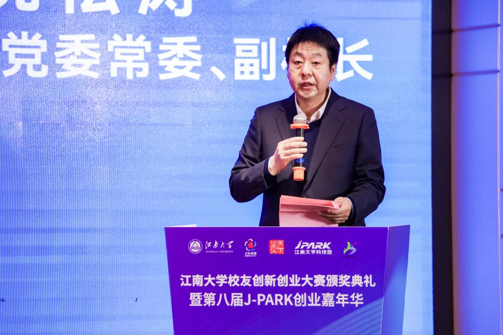 首先,倪松涛在致辞中表示:“校友和母校是情感共鸣、事业共创、使命共担的‘发展共同体’,为助力市校共建合作多结硕果,校地联办‘天下江南人·智汇太湖湾’江南大学校友创新创业大赛。以赛为媒,广邀天下江南人返锡留锡、创新创业;以赛聚才,以政策上门、服务上门、资源上门的引才服务体系,使校友深刻感受无锡“无比爱才·锡望您来”的引才氛围;以赛促创,搭建校友与政府成果对接、资源共享、交流合作的平台,有效提升了校友创新创业项目的转化率、落地率、成功率。”