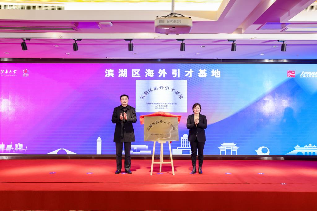 在揭牌环节,符惠明与蒋维维共同为“滨湖区海外引才基地”揭牌,国家大学科技园将与滨湖区人民政府深度合作,校地联动引才,开辟滨湖吸引海外高层次人才的新路径。