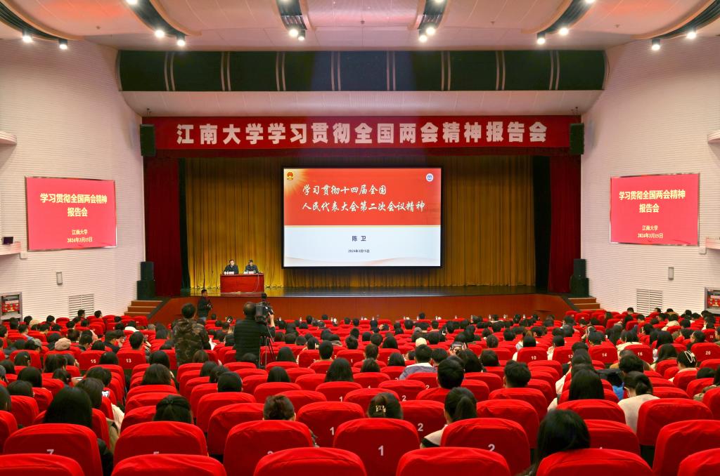陈卫全面介绍了今年人大会议召开的基本情况、政府工作报告等,认真传达了习近平总书记参加江苏代表团审议时的重要讲话精神,阐释了新质生产力的基本内涵、重大意义和发展路径,传达了习近平总书记希望江苏坚定信心、鼓足干劲、勇挑大梁,为全国大局作出更大贡献的殷切嘱托。他特别介绍了自己的履职情况,并表示面对面聆听习近平总书记的重要讲话,倍感光荣、倍感振奋、倍感自豪。希望全校师生恪尽职守、奋发有为,以实际行动推进学校各项工作高质量发展。