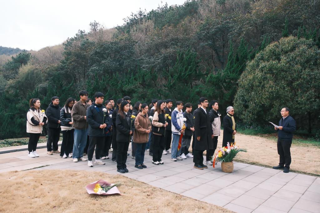 时近清明,登高思故;古木青松,苍翠肃穆。3月26日上午,我校原副校长王武教授带领社会合作与校友联络处、教育发展基金会党支部党员和相关老师,以及校团委、食品学院、生工学院和“荣毅仁”特称团支部的师生代表一行40余人,前往无锡华侨公墓祭扫原国家副主席荣毅仁及其夫人杨鉴清墓地。