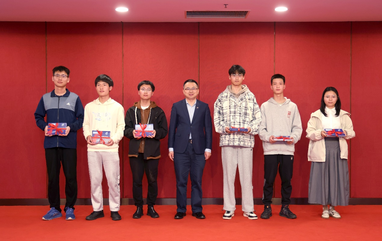 随后环节,周伟涛与魏珍吉共同颁发2023年度“荣耀至善”奖学金,用以表彰英语、学术及科研创新等方面表现优异的学生。至善2104的张俊杰作为获奖学生代表发言,深情讲述自身在至善学院的成长经历,表达对学院与老师的诚挚谢意,并给新生提出宝贵建议。