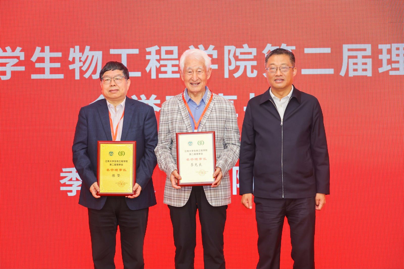 会议审议并通过了《江南大学生物工程学院理事会章程》《江南大学生物工程学院第二届理事会成员名单》。季克良、陈坚为生物工程学院第二届理事会名誉理事长,陈卫分别为名誉理事长授牌。张影陆为副理事长单位和常务理事单位授牌。张梁为理事单位代表授牌。