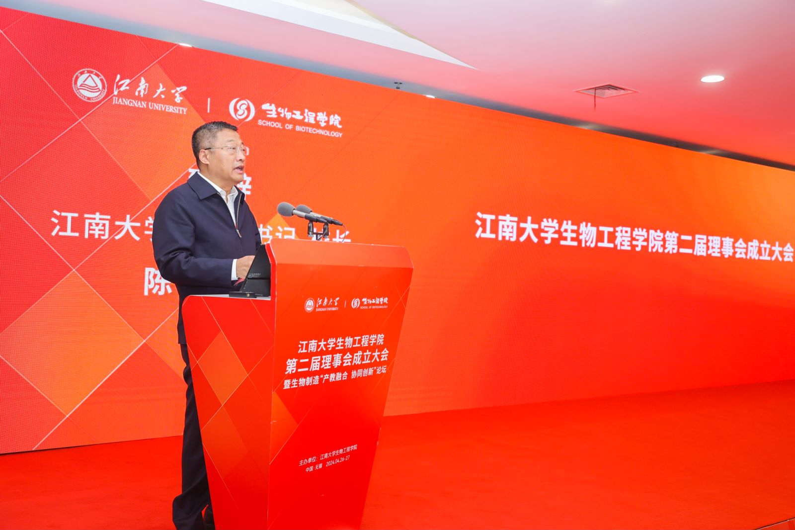 4月27日上午,江南大学生物工程学院第二届理事会成立大会暨生物制造“产教融合、协同创新”论坛在校图书馆五楼报告厅召开。中国生物发酵产业协会综合办公室主任胡修玉,中国酒业协会名酒收藏专业委员会秘书长刘海坡,茅台集团原董事长季克良,青岛啤酒原总裁樊伟,浙江古越龙山绍兴酒原总工程师邹慧君,百威英博啤酒区域原总裁夏兰武,江苏大富豪米歌酒业总经理胡金成,华润啤酒技术研究院院长钟俊辉,今世缘酒业副董事长、副总经理、总工程师吴建峰,华润啤酒技术研究院啤酒产品总监刘月琴,青岛啤酒科研开发中心主任尹花,中国工程院院士、校长陈卫,中国工程院院士、未来食品科学中心首席科学家陈坚,校党委常委、副校长张影陆,原副校长徐岩,校长助理张梁出席会议,103家学院理事会成员单位的企业领导和嘉宾,以及校长办公室、产业技术研究院、社会合作与校友联络处等相关职能部门负责同志及学院党政领导班子、学院师生代表200余人参加大会。会议由生物工程学院党委书记程捷音主持。