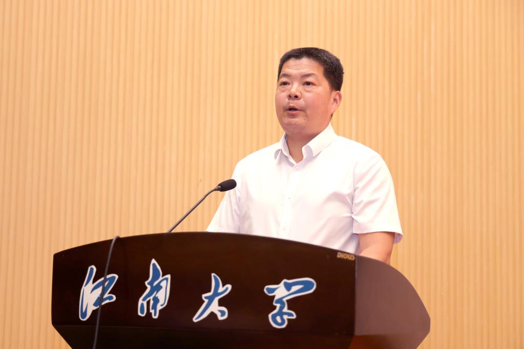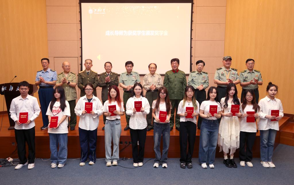 5月22日下午,江南大学关工委和无锡市退役军人事务局在江南大学远东报告厅联合举办“戎晖励行”奖助学金颁奖仪式。无锡市关工委副主任须俭,无锡市退役军人事务局党组成员、关工委主任、副局长傅强,局关工委常务副主任梅金超,局关工委副主任、军休中心主任陶延风,军休中心党委书记、关工委主任徐尚保,以及市关工委、局关工委、校关工委秘书长,军休中心(站)领导,军休老干部代表,锡戎之声合唱团、戎晖真情关爱团成员;江南大学党委副书记戴月波,校关工委常务副主任娄国栋,党委宣传部、学生工作处、离退休党工委、校团委、社会合作与校友联络处的领导,商学院、法学院、人文学院、纺织科学与工程学院、物联网工程学院、人工智能与计算机学院的党委副书记、学院关工委常务副主任、分团委书记等老师,以及2022级预科班的全体同学,共计近180人参加了会议,由商学院党委副书记徐静主持。