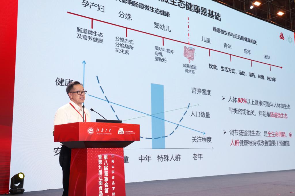 在主题报告环节,四位专家分别围绕食品科学前沿领域和相关热点问题进行分享发言。北京三元食品股份有限公司首席科学家陈历俊作“母乳研究助力全民健康”主题报告。上海长征医院营养科主任李娟作“营养与健康——糖尿病患者的营养管理”主题报告。南京理工大学计算机科学与工程学院教授周涛作“AI赋能消化疾病诊疗及智能营养干预”主题报告。江南大学未来食品科学中心教授钟芳作“食品感官感知与消费者认知分析新趋势”主题报告。