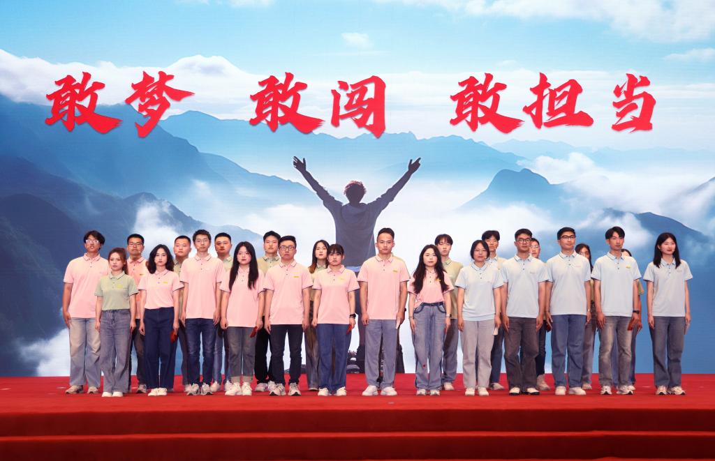 典礼最后,二十余位毕业生代表从敢梦、敢闯、敢担当等方面分享了他们的青春选择,宣告了他们的青春誓言,彰显了他们的江南底色,展现了“强国有我”的青春担当,并慷慨激昂地朗诵《敢》,让全场心潮澎湃、掌声迭起。