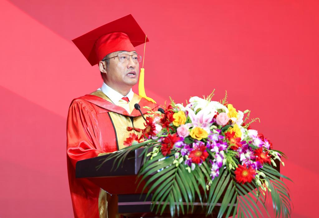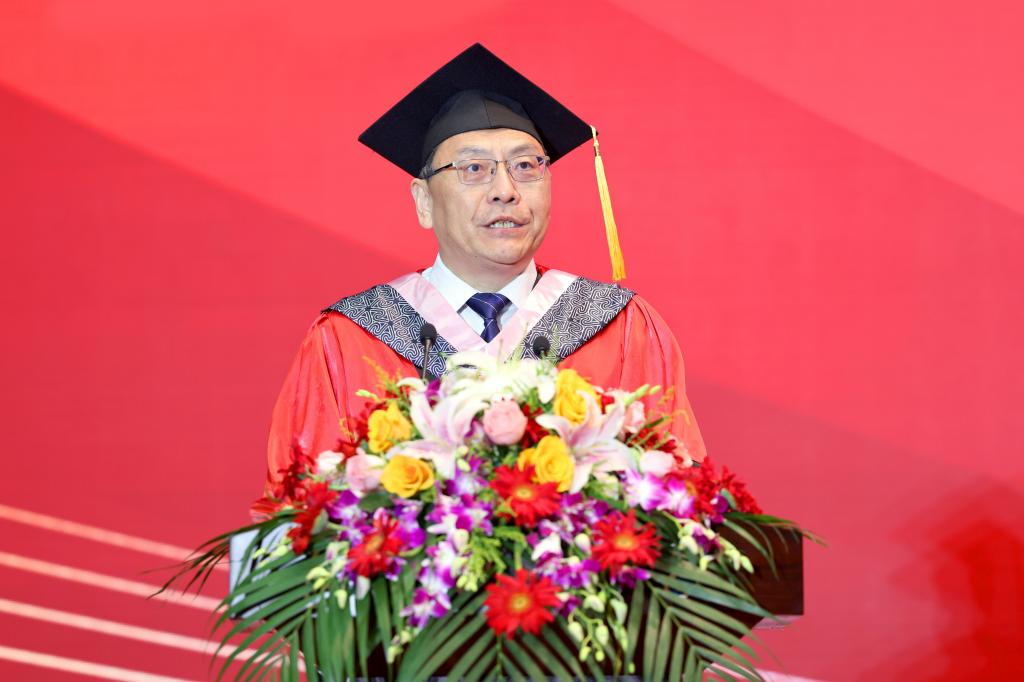 陈卫发表了题为《未来已来,以变应变》的讲话,向圆满完成学业的同学们送上热烈的祝贺,向悉心教导、细心呵护同学们成长的老师、亲友致以崇高的敬意和衷心的感谢。陈卫回忆了过去几年同学们用奋发图强书写属于自己的青春华章,回顾了学校用奋进担当书写属于江南的发展荣光,细数了国家用自强不息书写属于人民的时代答卷。