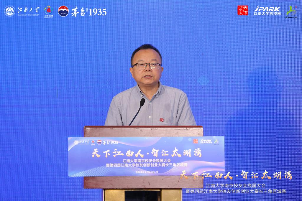 江南大学校友创新创业大赛是江南大学与无锡市政府联合举办的一项重要赛事,自2021年以来已成功举办三届,“天下江南人·智汇太湖湾”已成为江南大学校友心中响亮的口号,成为校友创新创业的一面旗帜。第四届江南大学校友创新创业大赛长三角区域赛首次在南京举办,与江南大学南京校友会换届大会同期,旨在汇集长三角区域校友创新创业力量,构筑“校友+母校+城市”发展共同体,激发校友创新创业活力,服务校友创新创业、学校成果转化区域经济高质量发展,推动校地合作迈向新高度。