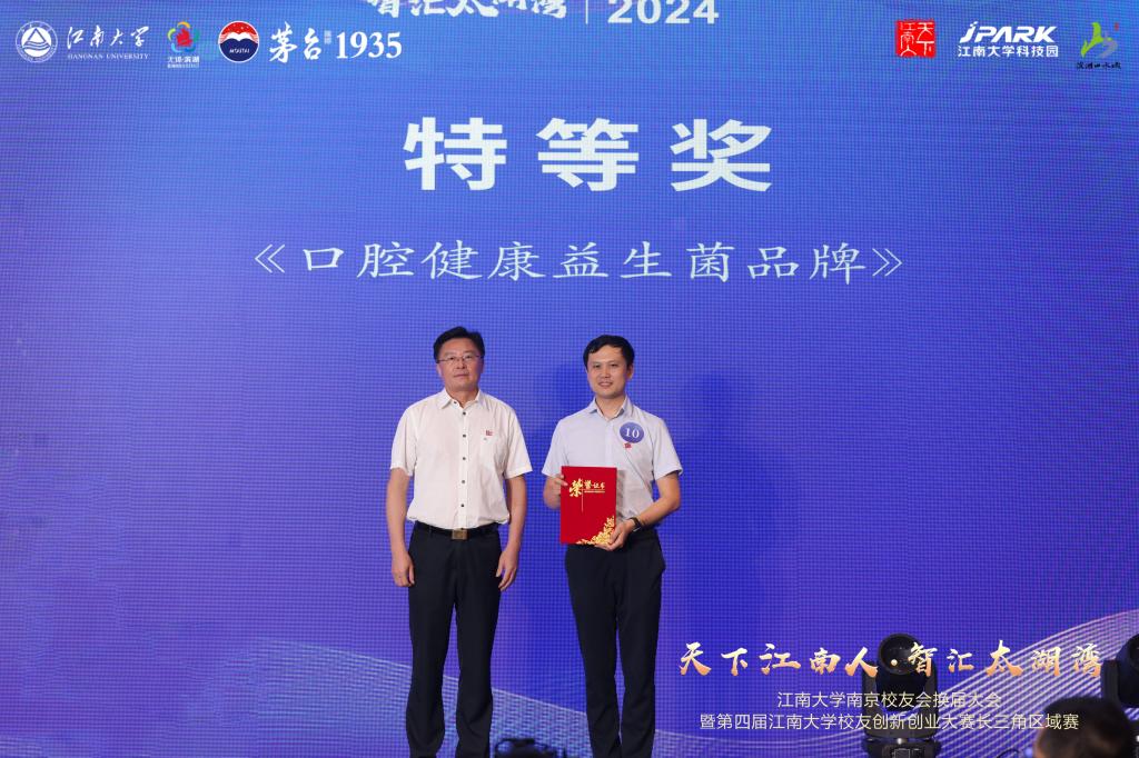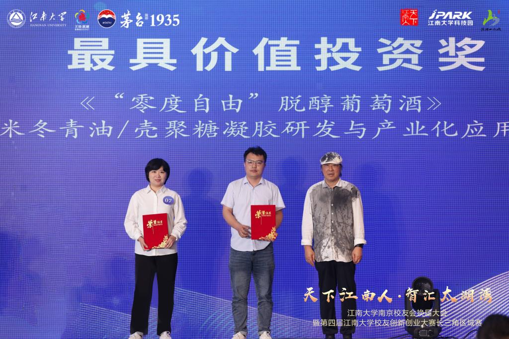 经过前期报名筛选,本次长三角区域赛共有15个优质项目参与角逐,各参赛项目就产业现状、关键技术、核心团队、产品优势及市场前景等进行介绍展示,最终7个项目获得本场大赛奖项,将晋级第四届江南大学校友创业大赛总决赛。“口腔健康益生菌品牌”获得特等奖。“超分子弹性蛋白:未来生物医药材料的革新者”获得一等奖。“‘向未来,赋新生’新能源汽车拧紧装配和纯电全地形车(E-ATV)”等2个项目获得二等奖。“低长径比低温常压再生胶成套设备及工艺技术”等3个项目获得三等奖。“纳米冬青油/壳聚糖凝胶研发与产业化应用项目和‘零度自由’脱醇葡萄酒”等2个项目获得最具投资价值奖。
