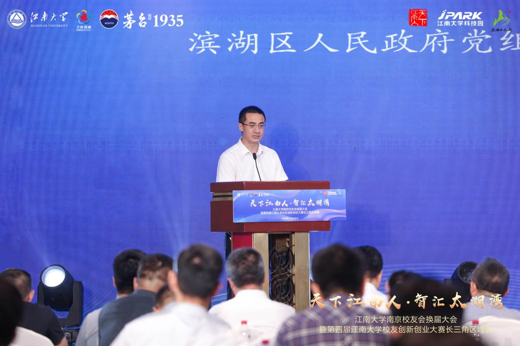 陈欣在致辞中表示:人才广聚,事业方兴。滨湖区近年来升级了“滨湖之光”人才政策,打造了“吾+”人才安居工程,用一条条引才政策、一场场求贤盛会、一项项留才举措,绘就“爱才、用才、留才”的诚意,欢迎江南大学校友返锡留滨创新创业,滨湖区将与江南大学拓展全方位合作,为校友企业提供更好更优的创业沃土。