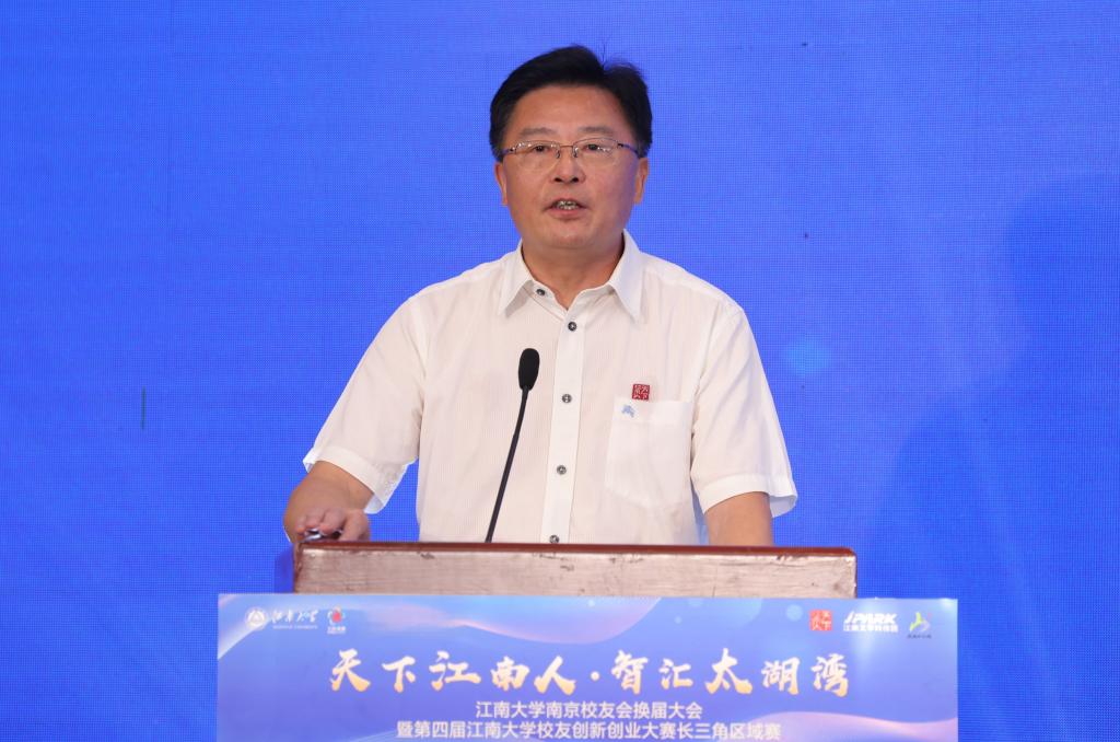 6月29日下午,江南大学南京校友会(团体)换届大会暨第四届江南大学校友创新创业大赛长三角区域赛在宁顺利召开。江南大学校友会会长符惠明,原副校长王武,社会合作与校友联络处、生物工程学院、纺织科学与工程学院、资产管理经营有限公司等部门(学院)主要负责人,以及来自安徽、浙江、上海、镇江、常州、无锡、苏州、扬州等兄弟校友会代表,南京新老校友代表等共150余人参加会议,大会由翁玮校友(精化98)主持。
