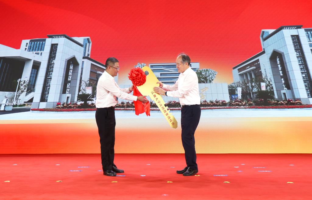 源江南,最霞客,共江阴。9月10日上午,江南大学江阴霞客湾校区启用暨霞客湾科学城共建签约活动在霞客湾校区体育馆举行。无锡市委副书记、市长赵建军,江苏省教育厅一级巡视员徐子敏,江南大学党委书记吴正国,中国工程院院士、江南大学校长陈卫,无锡市委常委、江阴市委书记许峰,无锡市人民政府秘书长陈寿彬,江阴市委副书记、市长包鸣,江阴市人大常委会主任计军,江阴市政协主席邵文松等领导出席仪式。无锡市相关部门主要负责同志、江阴市委市政府分管领导、各部门单位主要负责人、人大代表政协委员和市民代表,在澄兄弟高校代表,重点企业单位负责人,江南大学校领导班子全体成员,各职能部门、相关直属单位和学院主要负责人以及校友、师生代表等1300余人参加仪式。仪式由校党委常委、副校长倪松涛主持。