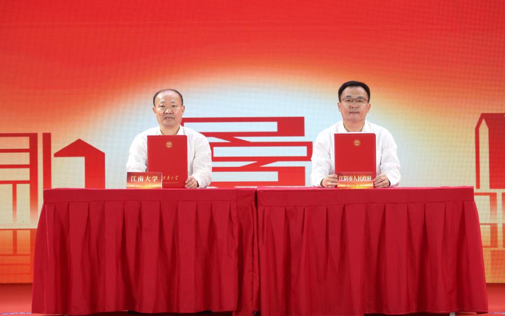 政产学研合作签约环节,江南大学党委常委、副校长顾正彪与江阴市委常委、常务副市长王琪进行江南大学与江阴市人民政府共建霞客湾科学城合作协议签约,江南大学产业技术研究院院长王立与江阴市科学技术局局长徐飞进行江南大学与江阴市人民政府共建国家技术转移中心江阴分中心签约,江阴霞客湾校区相关学院与江阴市相关企业代表进行科技项目合作协议签约。