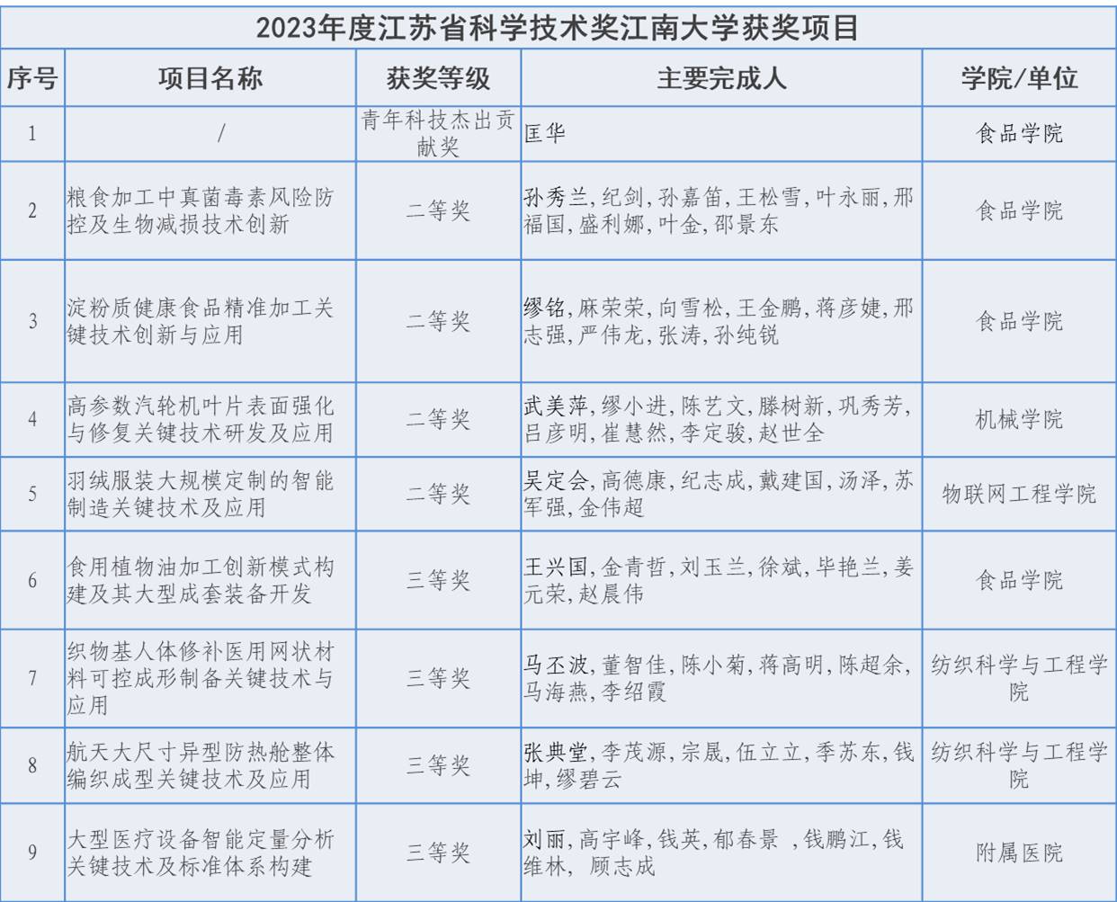 11月7日,全省科技大会暨全省科学技术奖励大会在南京召开。我校匡华教授荣获2023年度江苏省青年科技杰出贡献奖,为我校首次获得该类别奖项。8项江南大学作为第一完成单位的成果喜获2023年度江苏省科学技术奖,其中二等奖4项,三等奖4项。