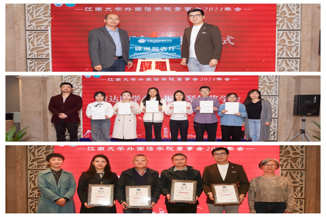 11月24日下午,江南大学外国语学院第一届董事会2024年会圆满举行。社会合作与校友联络处处长周云龙、工会副主席刘伯贤、董事会成员以及外国语学院师生代表出席了本次大会。大会由外国语学院党委副书记季王飞主持。