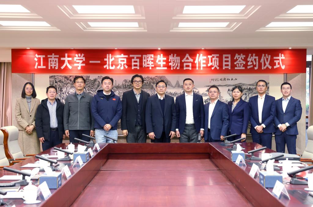 12月5日,江南大学与北京百晖生物科技有限公司(以下简称“百晖生物”)正式签署了新型糖蛋白结合疫苗产业化合作协议。这一合作标志着双方将共同开启合成糖疫苗的研究与开发,着力打造集研发与产业化于一体的合成糖疫苗平台,助力糖疫苗产业革命。江南大学党委书记吴正国与百晖生物执行董事魏巍出席了签约仪式,见证了这一重要时刻。江南大学教授尹健与百晖生物研发负责人孙晓东分别代表双方签署了项目合作协议。百晖生物总裁李向群、总裁助理阮智超、生物医学总监梁家鑫,江南大学党委办公室主任王维、生命科学与健康工程学院党委书记史志洪等出席活动。仪式由江南大学产业技术研究院院长王立主持。