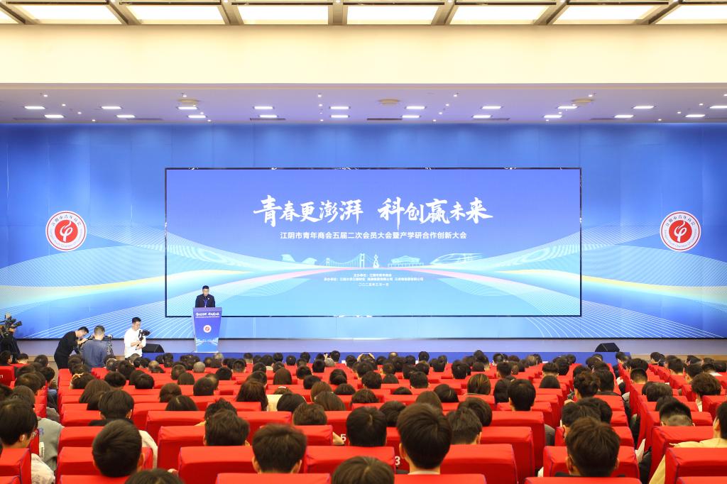 青春更澎湃,科创赢未来。3月1日,江阴市青年商会五届二次会员大会暨产学研合作创新大会在江阴霞客湾校区隆重举行。中国工程院院士、江南大学校长陈卫,无锡市委常委、江阴市委书记许峰,江阴市委副书记、市长王琪,江南大学党委副书记倪松涛,江阴市人大常委会主任计军,江阴市政协主席邵文松,共青团无锡市委副书记(主持工作)徐志军,江阴校区管理办公室主任王珏,南京理工大学江阴校区管委会副主任赵珂,上海商汤智能科技有限公司董事长、CEO徐立,江阴市企业家协会会长俞亚鹏,江阴市青年商会第五届理事会会长、海澜集团有限公司董事长周立宸等领导出席仪式。江阴市有关领导,相关部门负责同志,各镇街党工委书记,江阴市青商会全体会员以及江南大学江阴校区,南京理工大学江阴校区师生代表共计600余人参加活动。