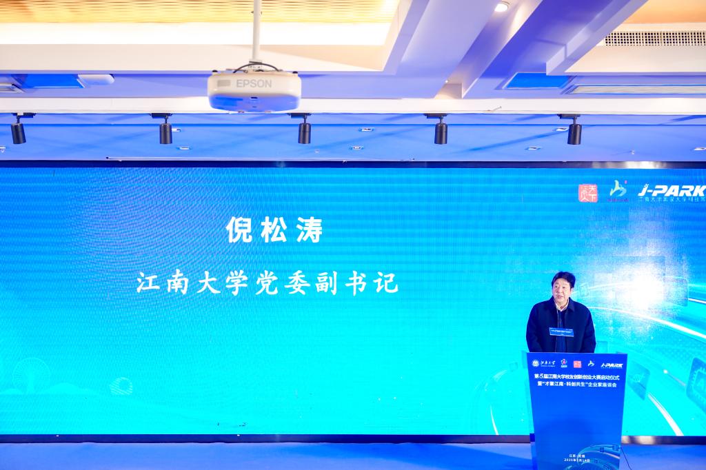 倪松涛在致辞中表示:大业需合力,重任贵同心!站在新的起点上,第五届江南大学校友创新创业大赛蓄势待发,既要秉承历届宝贵经验,又要在组织管理上不断精进创新,努力将赛事打造成为项目从落地到成长,再到发展的强力“加速器”。学校希望以大赛为平台,汇聚双创人才,努力为无锡地方呈现出“以赛聚才、以赛荐才”的积极成效,助推学校事业发展与无锡名城建设相融相嵌,积极探索校友经济发展新路径,合力打造“城市+母校+校友”的校友经济创新共同体!