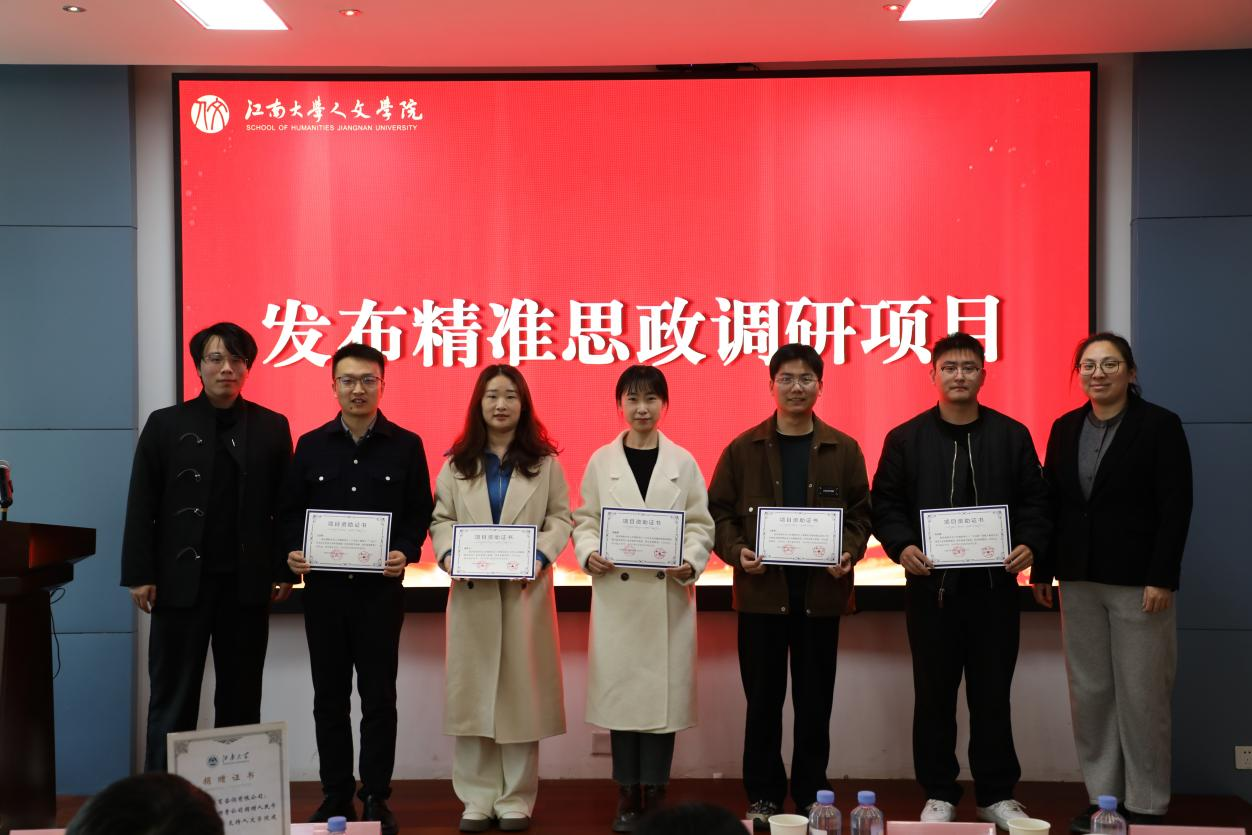 为扎实推进新时代立德树人工程,用好调查研究“传家宝”,开展真调研,发现真问题,真解决问题,强化思政精准供给,学院大力拓展社会资源支持学工队伍开展调查研究。此次活动发布了五个精准思政调研项目,分别是:“‘大思政’视域下师范生实践育人体系构建研究”“网络环境下大学生心理健康教育研究”“网络圈层化对大学生网络思政的挑战及应对策略研究”“大学生目标感的影响因素及提升路径研究”“三全育人视域下“一站式”学生社区学风工作体系构建”。无锡市学而思教育培训有限公司无锡选聘经理张伟与江南大学学生工作处副处长孔丽丹为项目主持人颁发资助证书。