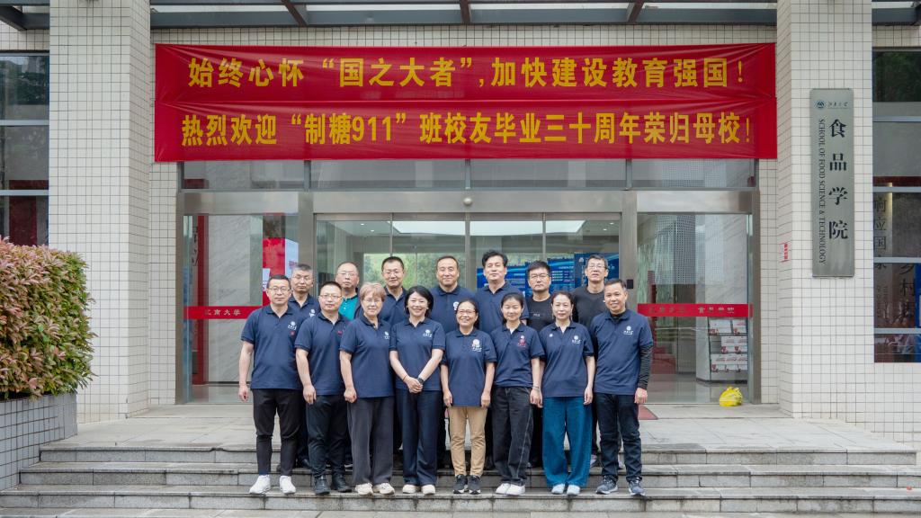 近日,我校食品学院迎来了一场温馨且颇具意义的相聚——江南大学(原无锡轻工业学院)制糖911班本科生校友在毕业三十周年的日子里,相约从全国各地重返母校,再叙同窗情谊,见证学院发展。