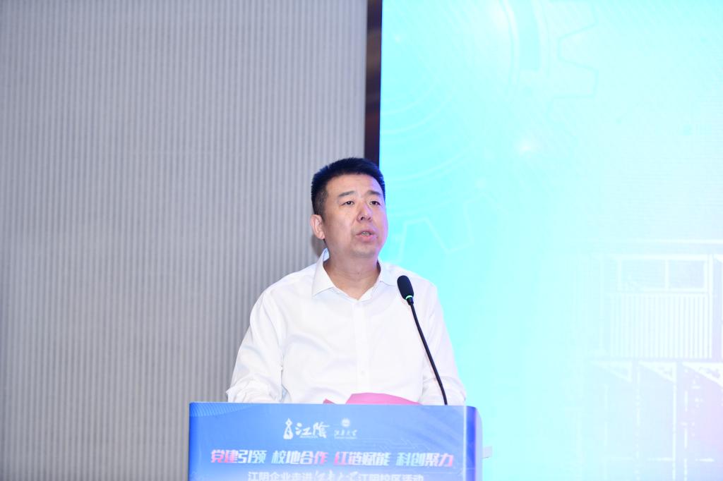 张梁向莅临大会的各位领导和各位来宾表示热烈的欢迎;向长期以来给予江南大学关心、支持和帮助的江阴市委市政府和各界朋友表示衷心的感谢。他简要介绍了学校事业发展的近况,特别是江阴霞客湾校区启用以来取得的良好成绩。他指出,“红链赋能”行动是政校企联动创新举措,并提出四点意见:一是党建引领,筑牢校地合作“红色引擎”;二是校地携手,共绘霞客湾“科创蓝图”;三是红链赋能,打造产学研“融合生态”;四是科创聚力,开启校地“共赢新篇”。江南大学将与江阴市委市政府、各位企业家朋友同心勠力、携手同行,以党建引领为方向,以科技创新为驱动,以合作共赢为目标,共同书写校地融合发展的崭新篇章。