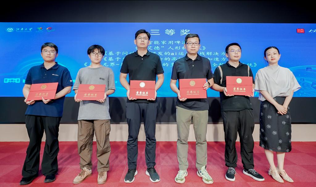 江南大学市校共建办公室主任奚晓岚和江阴校区管理办公室主任王珏为本届大赛评委,长广溪智能制造(无锡)有限公司执行董事、创始人吉峰,苏州江锦自动化科技有限公司总经理黄冬梅,江阴霞印投资有限公司董事总经理贾婷,上海中肃投资管理有限公司投资总监金哲明,江南大学纤维工程与装备技术学院院长武湛君等5位专家评委颁发聘书。江南大学青年校友创业者协会和江阴市青年商会签约共建青年校友创业者协会江阴基地。