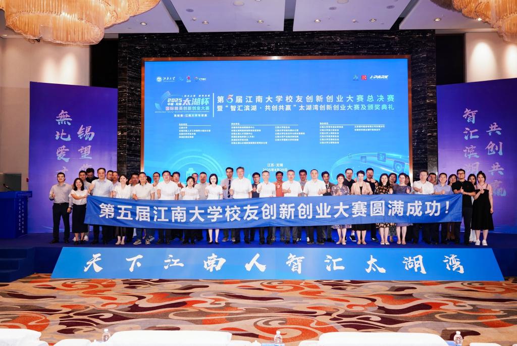 8月29日,第五届江南大学校友创新创业大赛总决赛暨2025中国无锡“太湖杯”国际精英创新创业大赛高校赛暨“智汇滨湖·共创共赢”太湖湾创新创业大赛及颁奖典礼成功举办。江南大学校友会会长符惠明,无锡市科学技术局三级调研员庞锋华,滨湖区委常委、组织部部长朱隽昉,滨湖区政府副区长蒋维维,无锡市科技创新服务中心主任肖栋,无锡市委组织部人才处处长袁晓雷,滨湖山水城党工委书记宋晓裕;江南大学社会合作与校友联络处、产业技术研究院、食品学院、纺织科学与工程学院、化学与材料工程学院、理学院、资产管理经营有限公司、国家大学科技园等部门(学院)主要负责人;江南大学青年创业者协会以及浙江、上海、苏州、南京、无锡校友分会代表;中肃资本、无锡润创投、苏民嘉禾、沿海私募基金、江苏银行、无锡农村商业银行等投融资机构负责人;参赛项目团队和企业家代表们共计100余人参加活动。