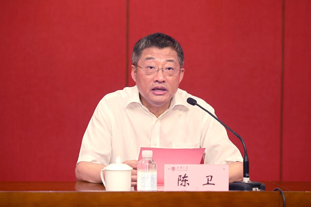 8月29日上午,江南大学在图书馆五楼报告厅召开干部教师大会,宣布学校有关副校长任免的决定,并通报学校近期重点工作。校党委副书记、校长陈卫主持会议。