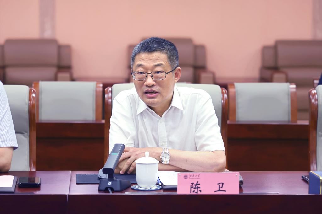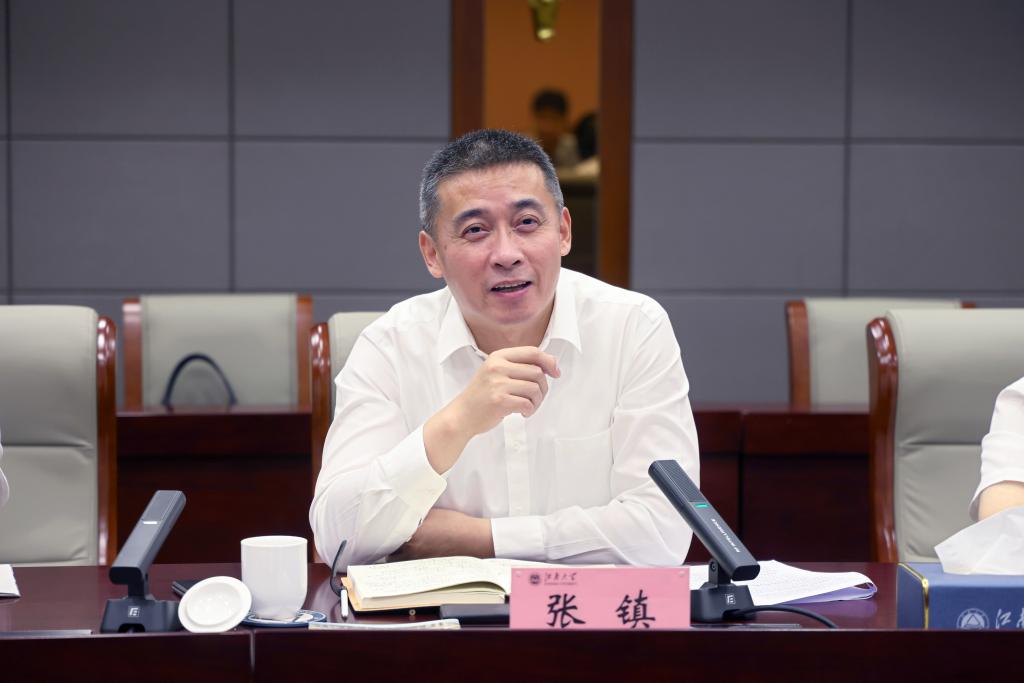 陈卫对张镇一行的到来表示欢迎,对无锡市长期以来给予江南大学的关心和支持表示感谢,他从办学规模、校区建设、学科建设等方面详细介绍了学校情况。马鑫从总体历程、运行机制、近年来取得的显著成效以及近期重点工作等方面介绍了市校共建江南大学的具体情况。