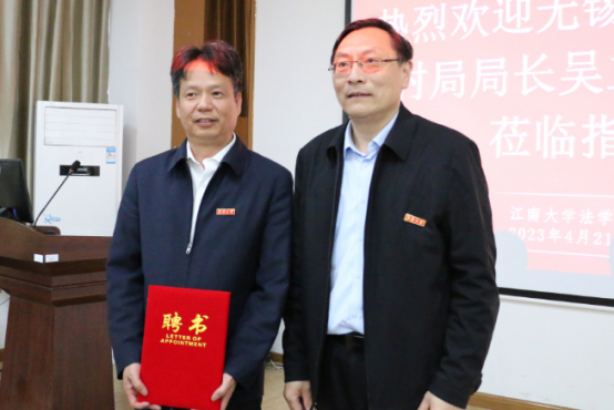 会前,吴立刚一行调研了食品学科史馆、协同创新中心和法学院。法学院调研期间,吴立刚受聘为江南大学研究生校外指导老师并为师生作报告。
