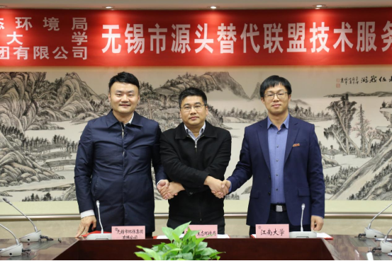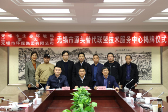 会上,江南大学与市生态环境局、市环保集团有限公司共同签订源头替代联盟服务中心战略合作框架协议。戴月波、王海明等为“无锡市源头替代联盟服务中心”揭牌。