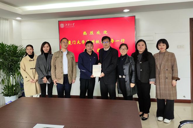 陈琳对厦门大学漳州校区领导一行的来访表示热烈欢迎,并从学校规模、办学定位、学科优势、市校共建等方面介绍了学校的发展情况。他表示,江南大学的校区建设工作推进一定程度上得益于无锡从“工商名城”向“科创名城”转变的发展战略,得益于市校共建的大背景与地方的支持,也希望借鉴厦门大学的办学经验推动江南大学更好更快发展。