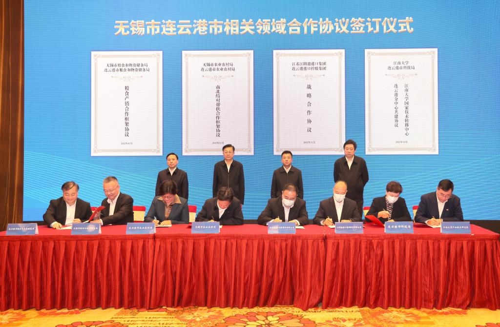 11月4日上午,无锡连云港南北结对帮扶合作第二次联席会议在锡召开。无锡市委书记杜小刚、市长赵建军携相关市领导及部委办局、各区(市)主要负责人,与连云港市委书记马士光、市长邢正军一行座谈交流并陪同考察。江南大学党委常委、副校长顾正彪、吴正国,市校共建合作办公室主任陈琳、产业技术研究院院长刘龙等参加联席会议。