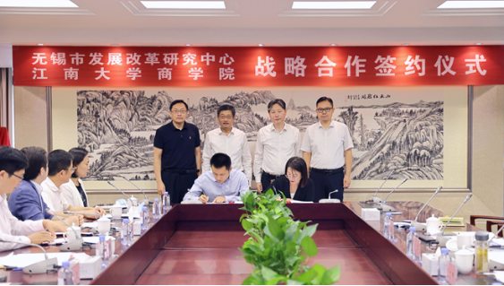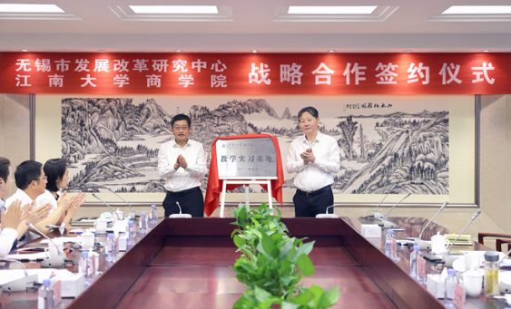 会上,商学院介绍了学院发展情况、服务无锡以及与市发改研究中心合作情况。陈卫与曹文彬共同为“江南大学商学院教学实习基地”揭牌。无锡市发展改革研究中心与江南大学商学院共同签署《无锡市发展改革研究中心 江南大学商学院战略合作框架协议》。
