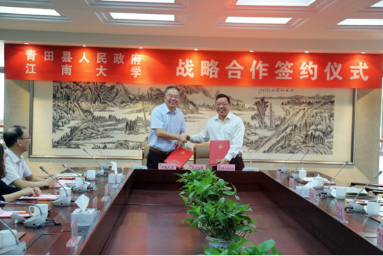 9月25日上午,我校与青田县举行战略合作签约仪式,青田县人民政府副县长尹世锋,青田县委组织部、政府办、科技局、招商局等部门负责人来访我校并出席签约仪式,我校校长办公室主任张光生,食品学院党委书记向琪,地方服务与合作办公室、产业技术研究院等部门负责人会见了来访宾客。仪式由产业技术研究院副院长谢卫忠主持。