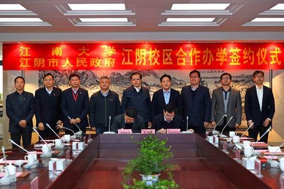 中国工程院院士、校长陈坚与江阴市委副书记、市长蔡叶明共同签署《江南大学 江阴市人民政府江阴校区合作办学协议》