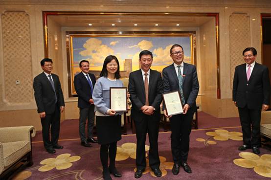朱拓书记向王磊总裁、冯佶总经理颁发客座教授聘书