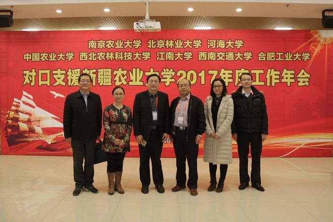 12月1日,“对口支援新疆农业大学2017年度工作年会”在新疆农业大学召开,会议全面总结了一年来对口支援工作的成绩和经验,研究谋划了今后一个时期工作思路和重点任务。自治区党委教育工委常务副书记王志军,我校吴正国副校长携党委组织部、食品学院负责人等一行和南京农业大学、北京林业大学、河海大学、中国农业大学、西北农林科技大学、合肥工业大学、西南交通大学等高校代表,新疆农业大学全体在校领导及相关单位和学院负责人参加会议。